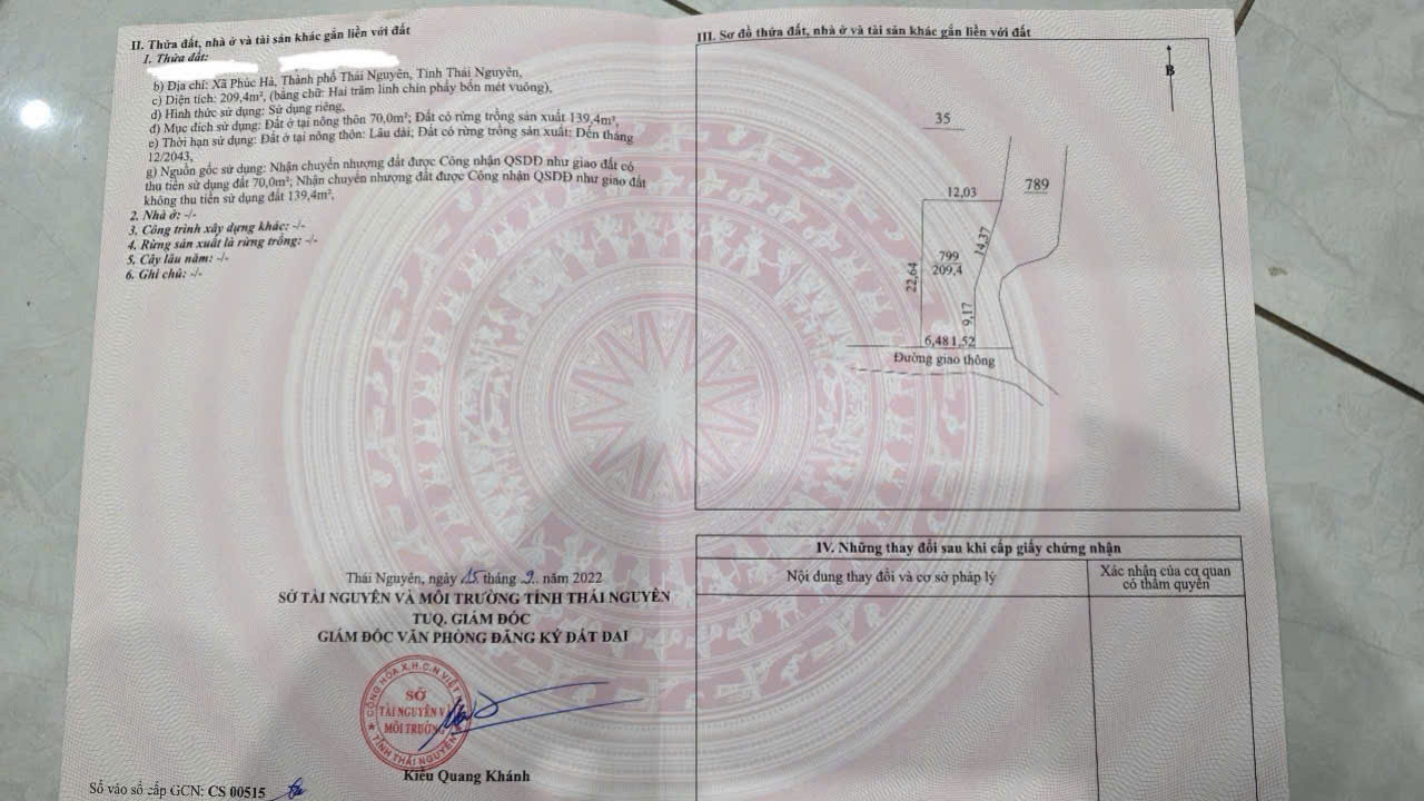 ▪️ Diện tích: 209,4 m² (theo sổ đỏ)
